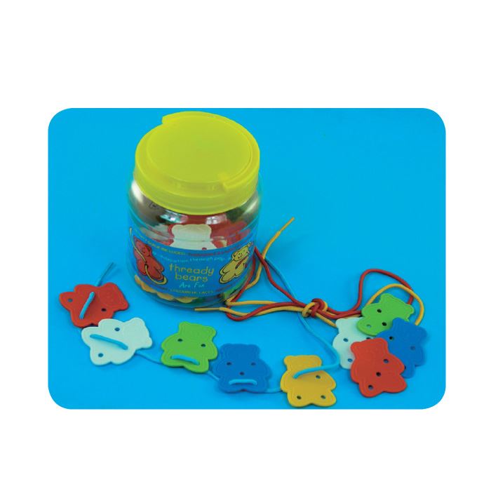 不同颜色的小熊造型可以让孩子们进行穿线游戏,也可以作为美术活动的游戏素材