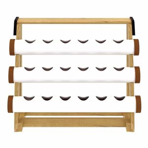 The multiple holes in the cylindrical hollow pipe on the wooden frame separate the planting space into small flowerpots, which are very suitable for planting small plants.