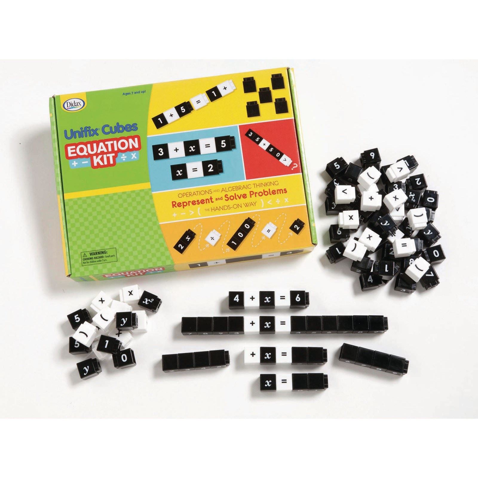 This unique collection of specially-designed Unifix® cubes provides the connection between the concrete and the abstract and offers a great way to illustrate multiple representations! The set includes 100 Unifix® Cubes - numerical values are black and the operations symbols are white. A guide for creating and solving simple-to-complex equations is also included. The set can be used with standard Unifix® Cubes and apparatus.