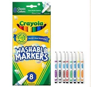 8 ct. Washable broad line markers-classic 8 washable broad line markers in classic colors in a peggable box.