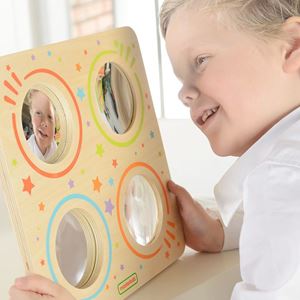 This visual experience toy consists of a concave lens, convex lens, a magnifier and a mirror. A good visual educational toy kids will have fun with.