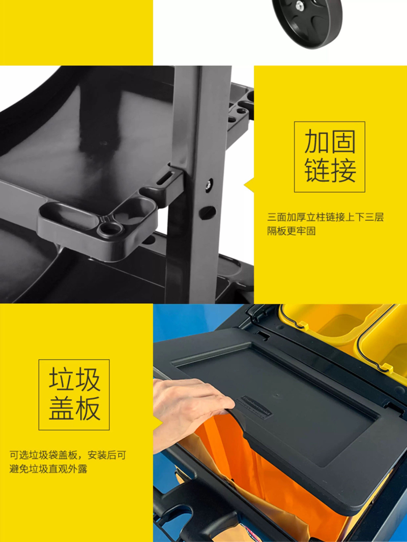 Rubbermaid乐柏美商用保洁手推车工具车多功能三层清洁车FG9T7200